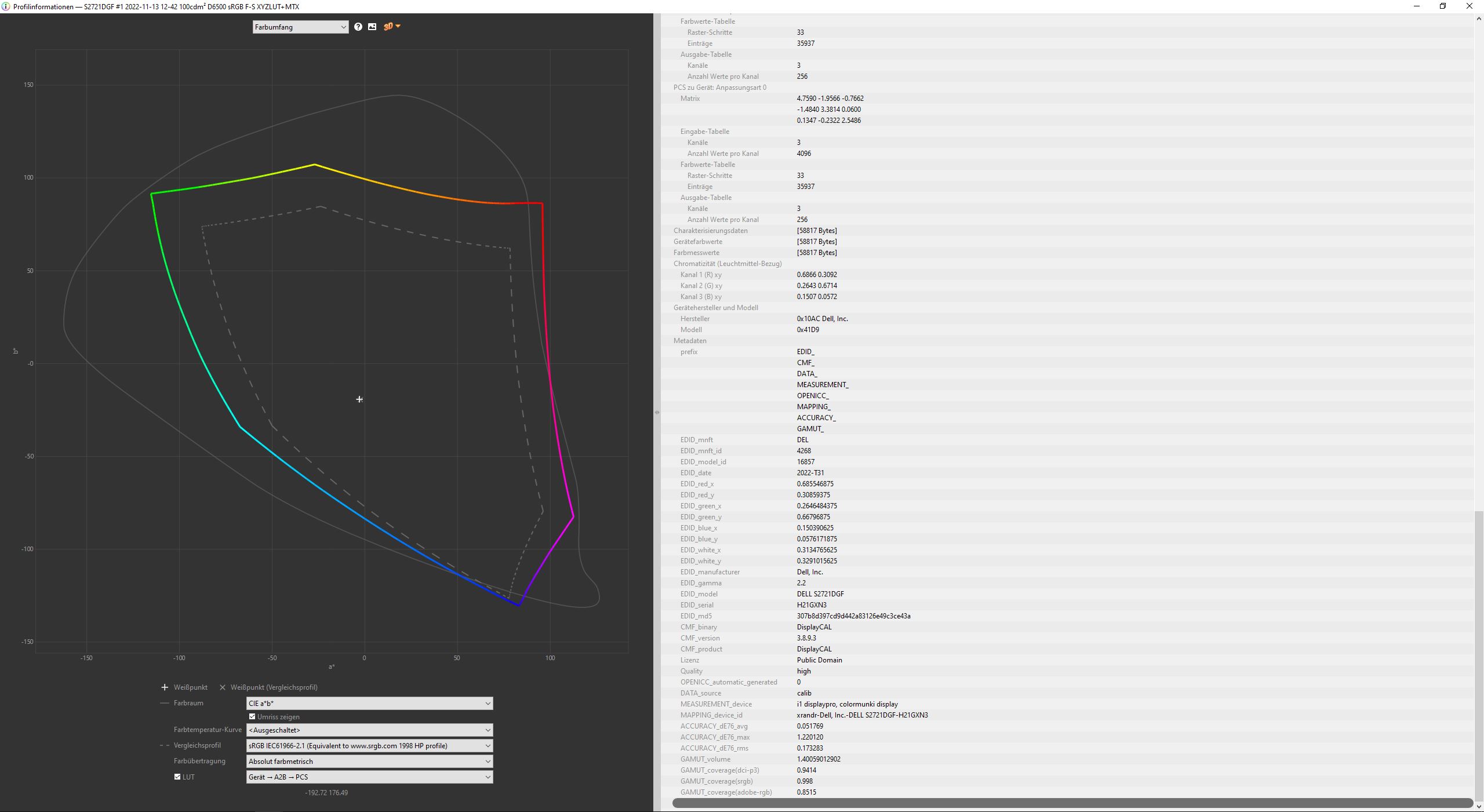 2. Wo kann ich nachträglich sehen, wie viel sRGB / DCIP3 usw. abgedeckt wird? In den Profilinformationen sieht man zwar viel, aber ich als Laie erkenne das (noch) nicht so gut.