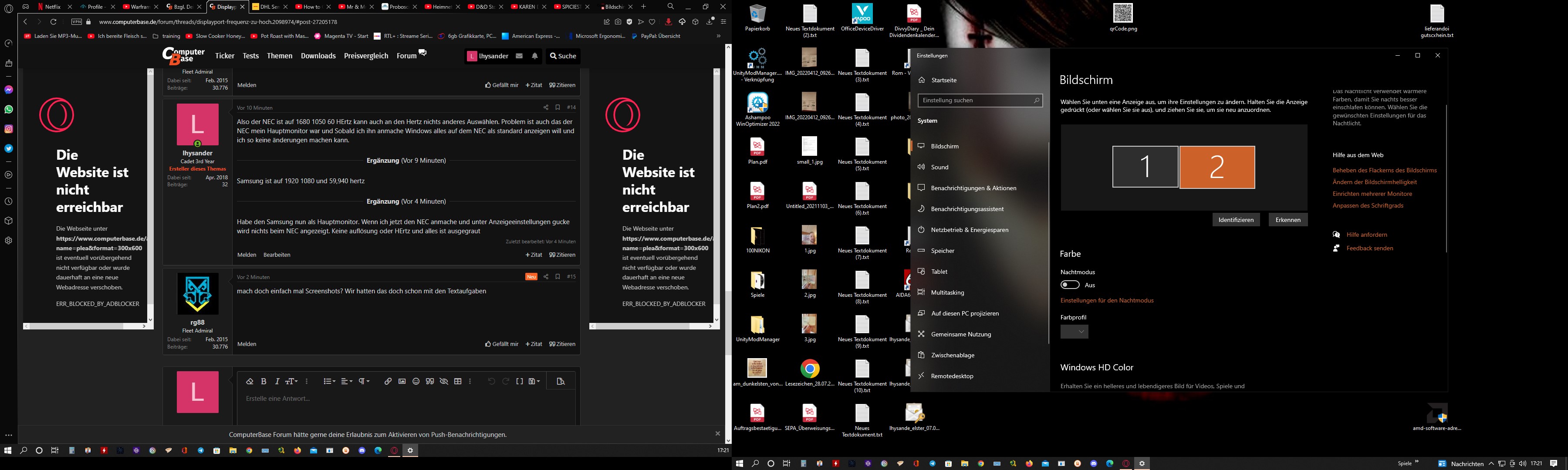 Zuvor hatte ich den Samsung über HDMi und den NEC über DVI angeschlossen. Meine neue Grafikarte hat nur 1 HDMi und 4 Displayport anschlüsse. Der Samsung geht nur über HDMI der NEC hat Diplayport. Aber wenn ich ihn anchliesse kommt die Meldung das die Frequenz zu hoch ist und er bleibt schwarz. Schliesse ich ihn über ein Adapter vga-hdmi über Hdmi an geht er. HZ kann ich nur 60 einstellen. Woran könnte das legen und kann ich etweas tun damit er über displayport läuft?