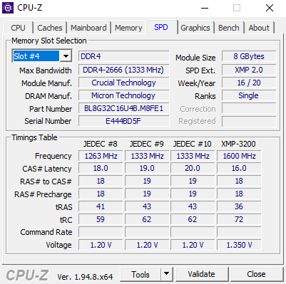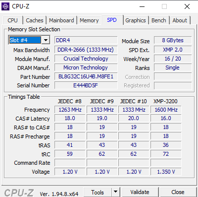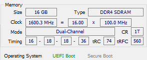 Beste Einstellung für die 3200er Ballistix: 1,35V bei 1600 Mhz Frequenzy (2x1600=DDR4-3200) und 16-18-18-36-72.