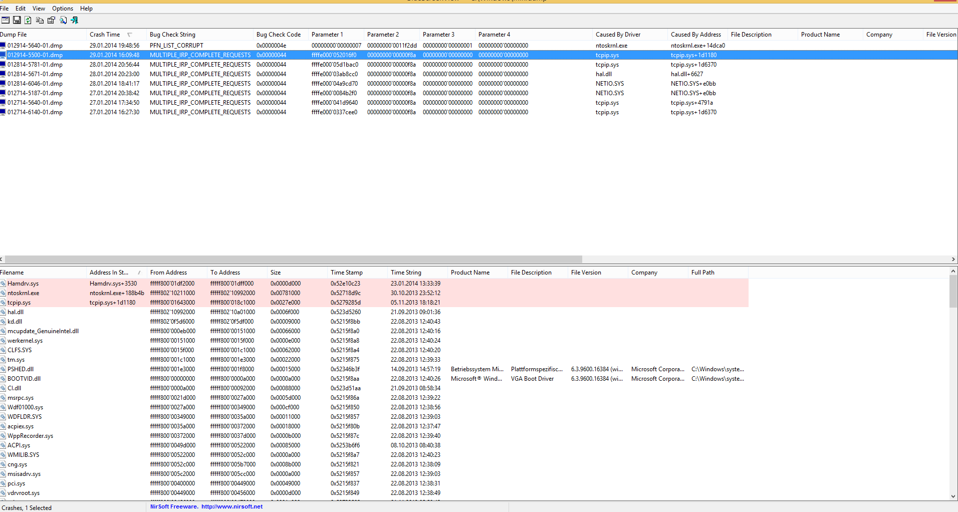 Es ist der LogMeIn Hamachi Treiber. Hier mal stellvertretend zwei unterschiedliche Stopfehler mit gleicher Ursache. Alle anderen Dumps entsprechen diesen Beiden Auswertungen.