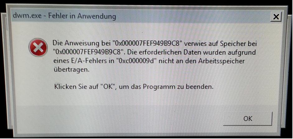 Nach drücken von Ok kam ich zwar zu meinem Desktop zurück jedoch ohne Explorer, und nach weiteren 10 Sekunden ist er ganz abgeschmiert.