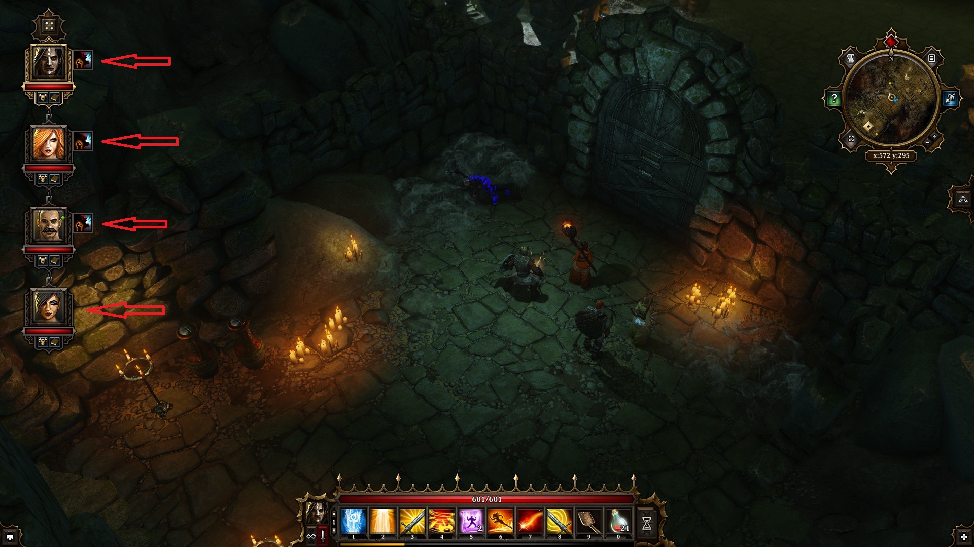 Die Taktik mit dem anschleichen funktioniert auch gut bei den Exploskeletten (die mit der Bombe am Rücken). Mit einem Zauberer in den „Schleich-Modus“ gehen, auf Distanz gehen (bei dem Zauber „Aufflackern“ 15m) und am besten warten bis sich die wandelnden Bomben sich so vielen weiteren Untoten wie möglich nähern und zaubern! Erst dann wird auch erst in den rundenbasierten Kampfmodus hineingewechselt.