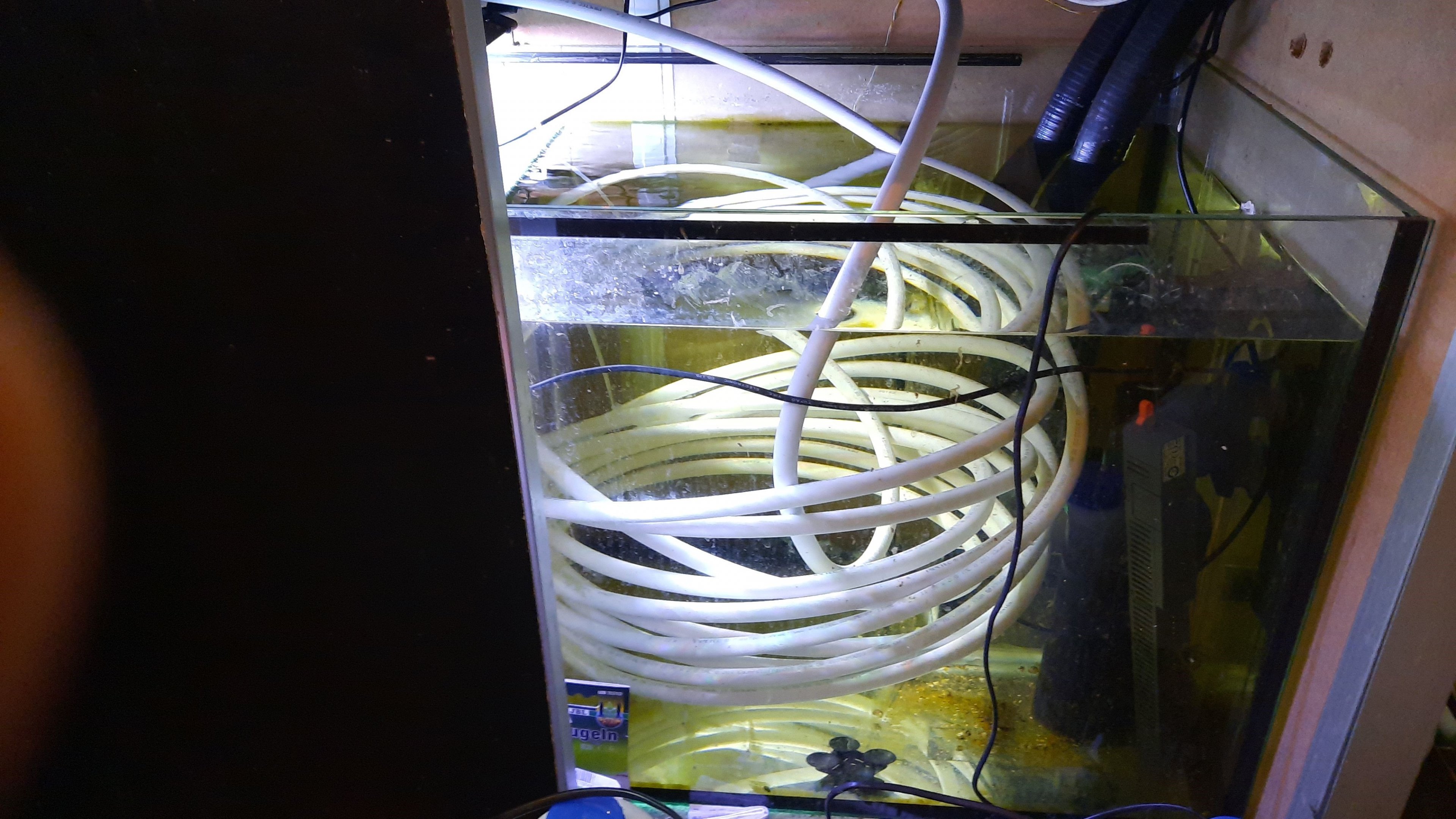 Nochmal zum Aquarium: Kontamination des Aquawassers mit der Kühlersoße ist ausgeschlossen solange niemand das Heizungsrohr mit Säge,Hammer,Meißel bearbeitet. Geschlossen verlegt,Anschlüsse ausserhalb des Unterschranks.