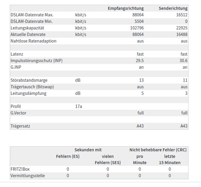 Die Fritzbox 7390 zeigt mir im Interface unter Anschlüsse DSL "verbunden, 88.1 Mbit/s an, bei jeden Speedtest schaffe ich jedoch nur ca 12Mbit. Hab auch mit meinem Handy einen Speedtest via WLAN gemacht, gibt mir die gleichen 12Mbit.