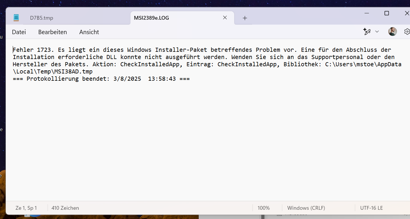 Ich habe die aktuellste Windows 11 Version, habe den Laptop bereits Neu gestartet, neu heruntergeladen etc. es hilft nichts.