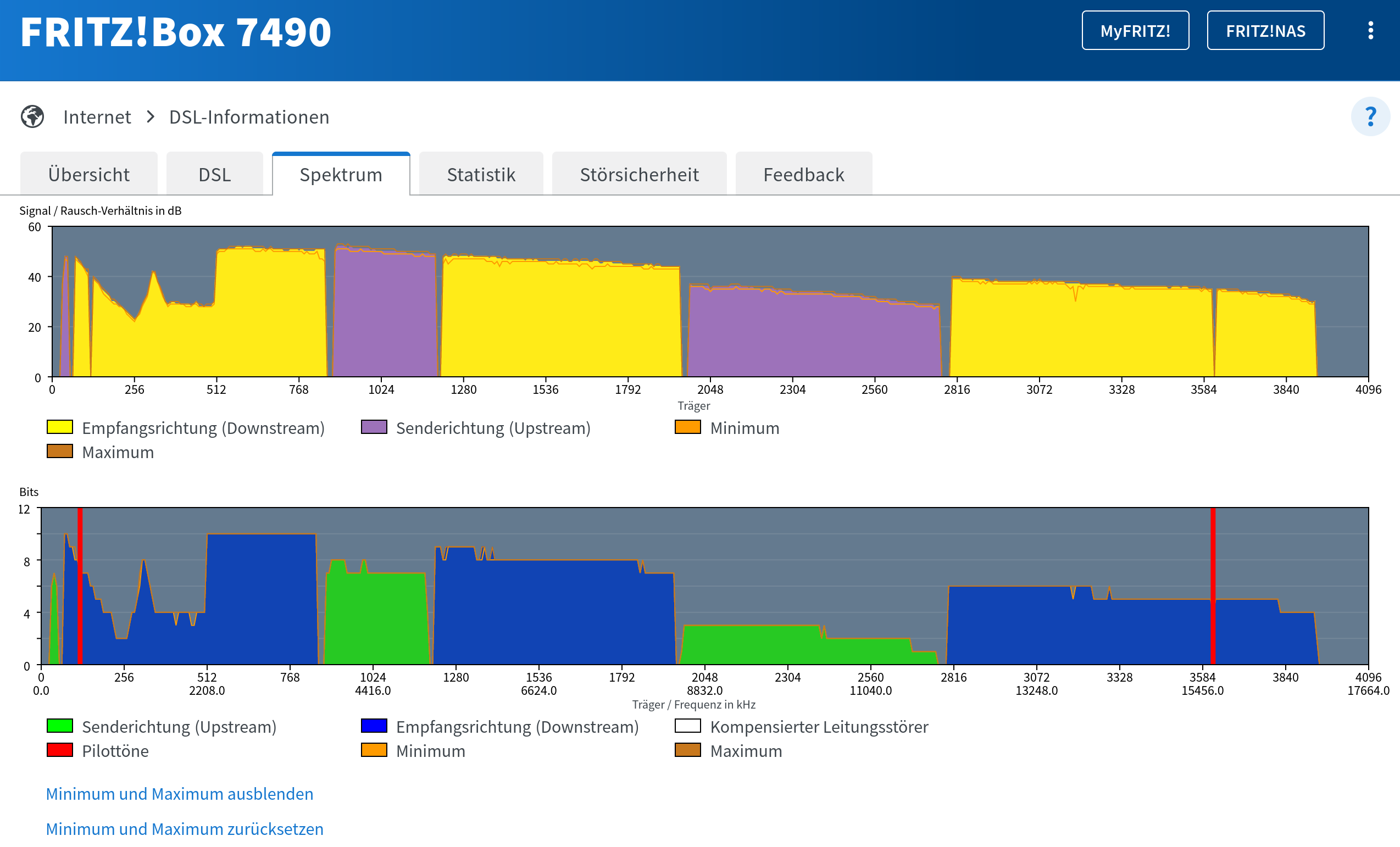 Ja, Problem ist nur, dass das mit dem "dann nehme ich doch lieber die höhere Störabstandsmarge" einfach nicht funktionieren wird. Weil es beim nächsten Resync, der unweigerlich irgendwann kommen wird, schon wieder ganz anders aussehen kann. Die Außentemperatur spielt da übrigens auch mit rein. Im Sommer bei +30 Grad wird die Leitungskapazität etwas niedriger sein als im Winter bei -10 Grad.