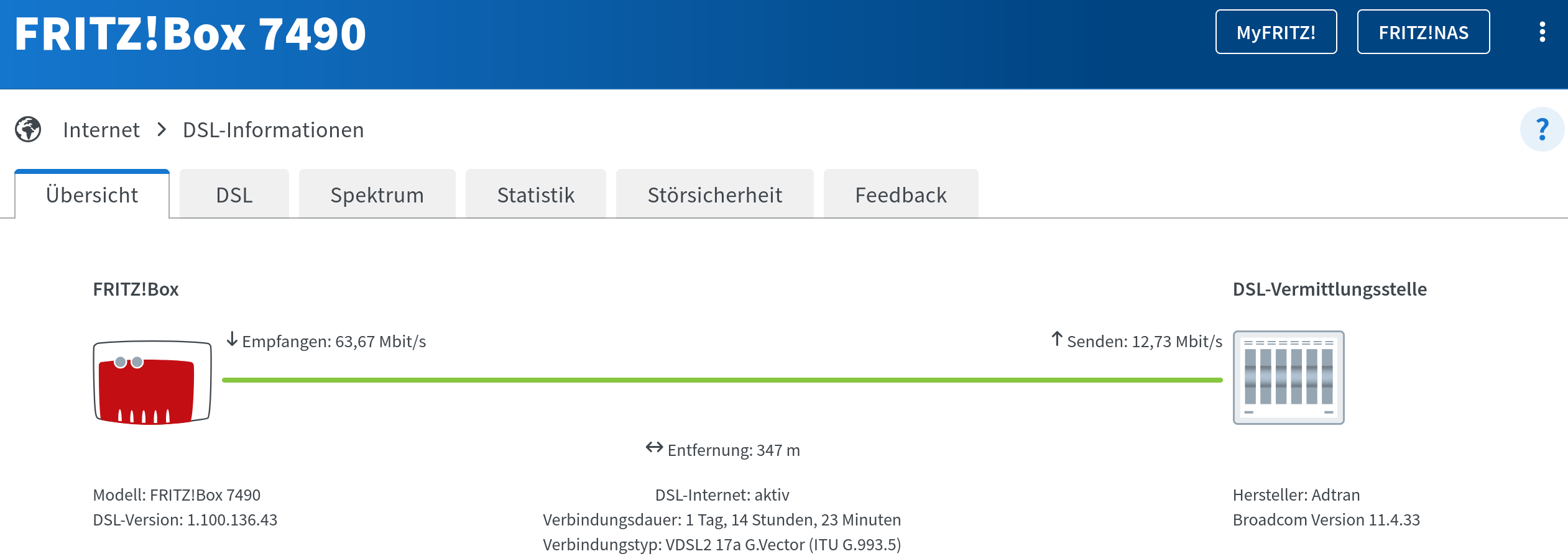 Ich habe auch die Erfahrung gemacht, dass eine Fritzbox 7530 AX mit Broadcom-Chipsatz weniger kritisch auf EMV-Einstreuungen reagiert. Anscheinend ist es doch besser, wenn man denselben Chipsatz-Hersteller im Modem wie den im DSLAM einsetzt.