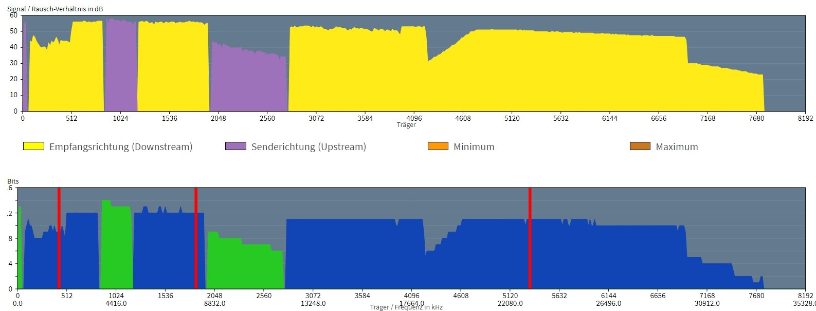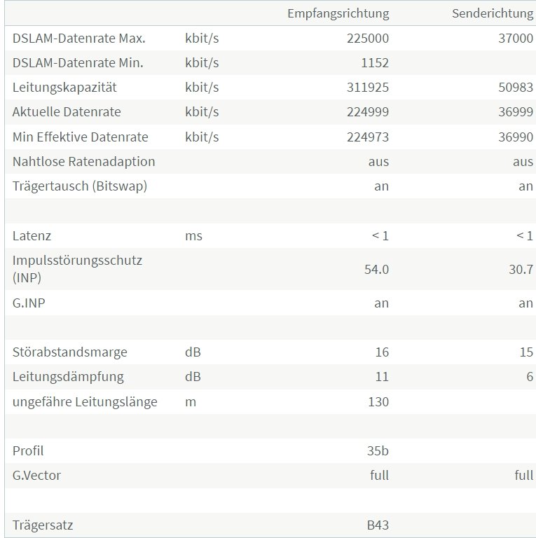 Bevor ich dann hier maximal das 55 MBit/s Profil festlegen lassen habe, hat DLM mich sogar bis auf 30 MBit/s runtergedrückt, ohne CRC Fehler etc .... fast jede 2. - 4. Nacht eine Anpassung durch DLM und das in Coronahochzeit und verortneten Homeoffice mit Nachtschicht, bei dem ich mir eigentlich keine Unterbrechung wegen Monitoring und nötigen Uploads leisten konnte. Und nein, das ist nicht vergleichar mit dem 24h DC, diesen konnte man ja festlegen. DLM ist ja willkührlich und in einen großen Zeitfenster.