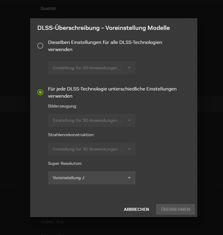 Aber angenommen ich möchte DLSS Quality mit dem aktuellen Modell nutzen, wie aktiviere ich das?