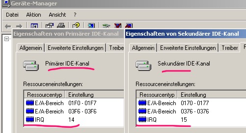Arbeitsplatz ->rechtsklick-> Eigenschaften-> Hardware->Geräte-Manager->IDE ATA/ATAPI-Controller