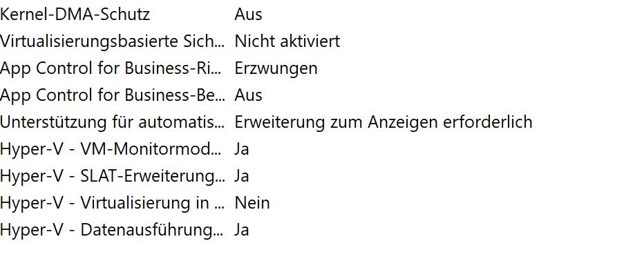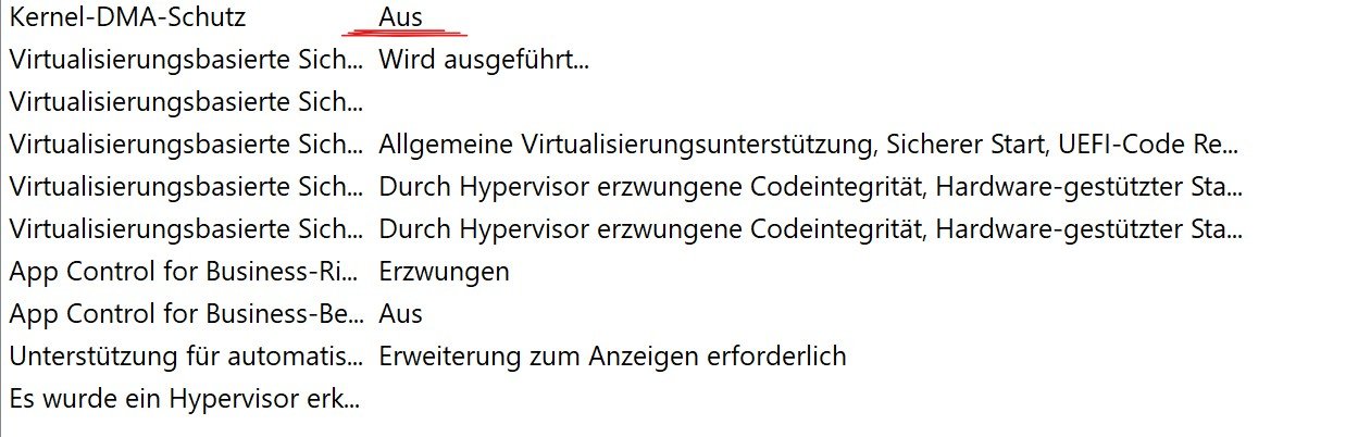 auch wenn ich Hyper V Aktiviere bleibt der DMA Schutz aus.