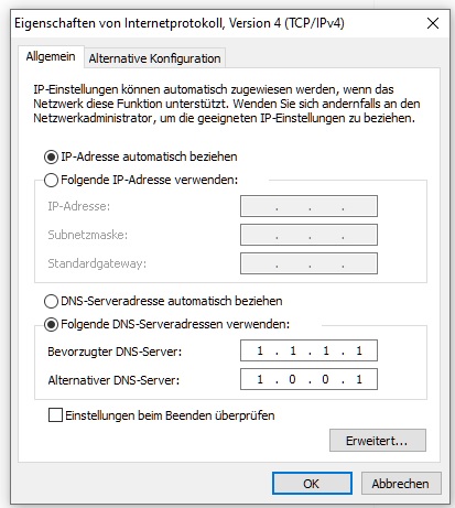 Nun liest man öftern dass es sehr viel bringt den DNS auf den von Google oder Cloudflare zuändern.