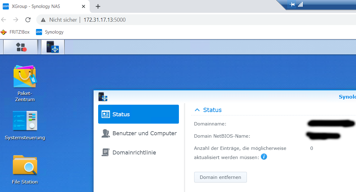 Frage die noch aufgekommen ist. Ich kann via GPMC.msc nicht auf die Gruppenrichtlinien zugreifen, wenn ich in den Adaptereinstellungen nicht die DNS der NAS eintrage. Dachte in die Adaptereinstellungen lokal am Client gehört sowas nicht hin?