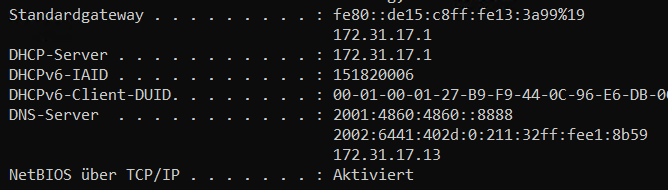 DHCP-Server . . . . . . . . . . . : 172.31.17.1 -> ist die Fritzbox
