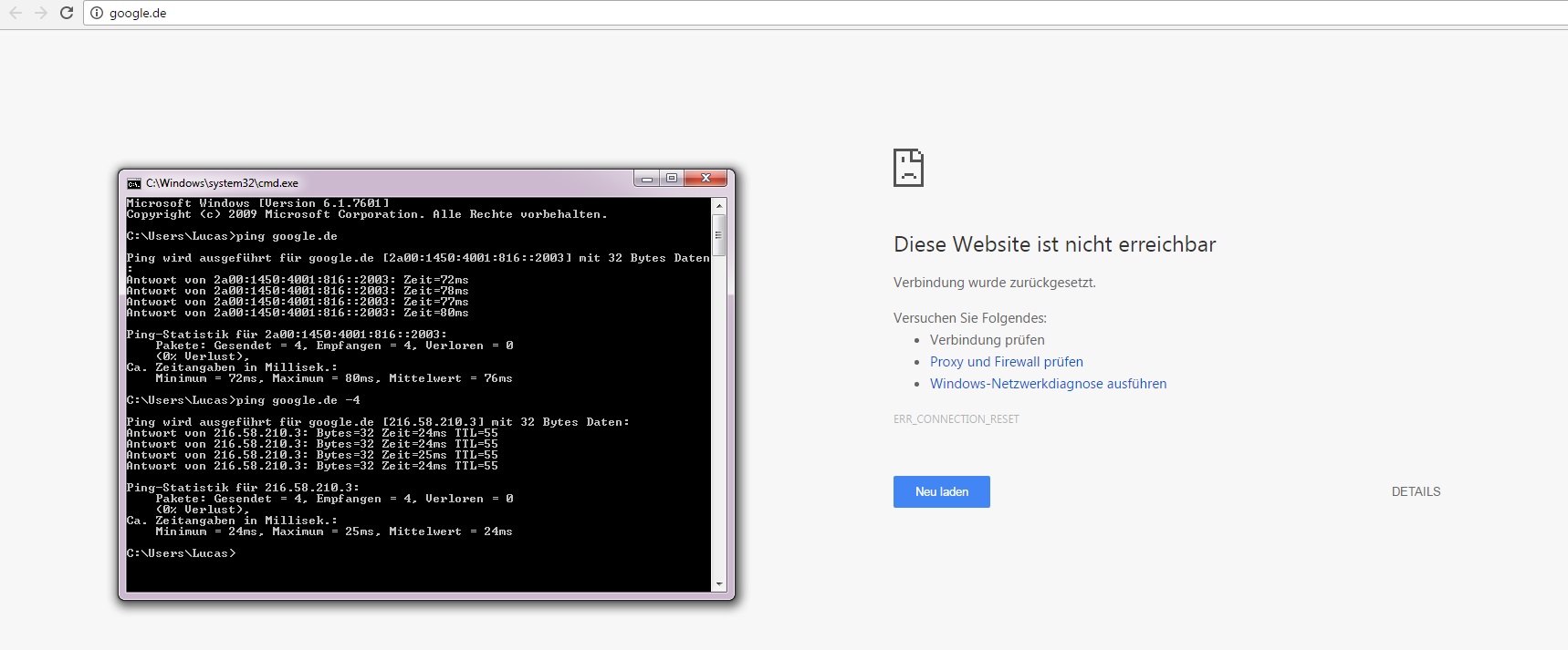 Ich habe bisher schon meinen Router resettet und danach ging es auch für eine Minute und danach wieder das gleiche Problem.