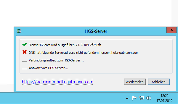 seit einigen Wochen funktioniert in unserer Werkstatt leider der Tester nicht mehr richtig da er keine Verbindung über unseren DNS Server zu sein Portal herstellen kann anbei die Fehlermeldung