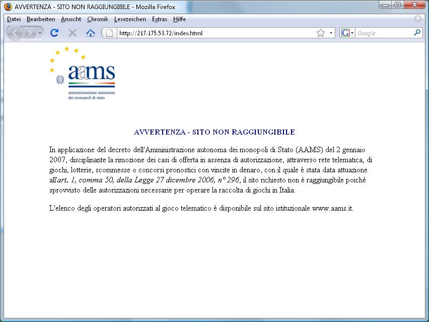 in Italien werden populäre Pokerseiten gesperrt. (siehe Screenshot)