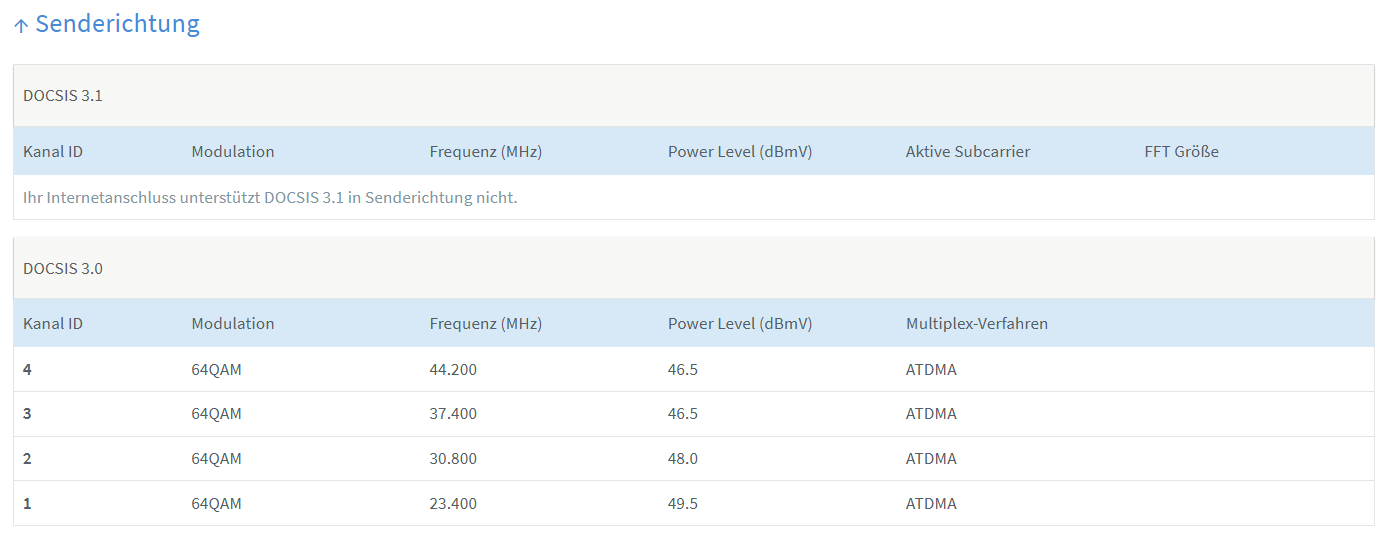Beim Speedtest hat sich herausgestellt, dass mir 30mbit vom Upload fehlen. Ein Blick in die Box bestätigt das auch mit fehlendem DOCSIS 3.1, welches, nach meiner Recherche, notwendig ist um die entsprechende Uploadgeschwindigkeit zu erreichen (Halbwissen, bitte korrigieren falls inkorrekt).