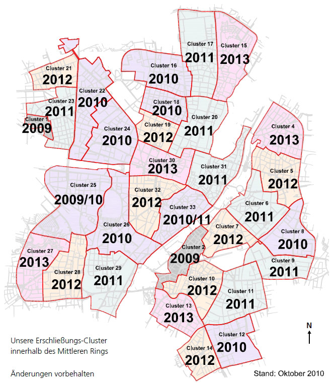 In manchen Fällen besteht dann so ein Cluster bis heute aus bis zu 50.000 (!!!) Haushalten und die alle müssen mit insgesamt 300Mbit auskommen.