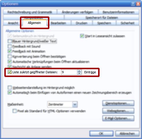 könnt mir mal einer fix erklären ,wie ich unter word in dem "start"-menü mir die letzten 4 geöffnetten Dokumente anzeigen lassen kann?