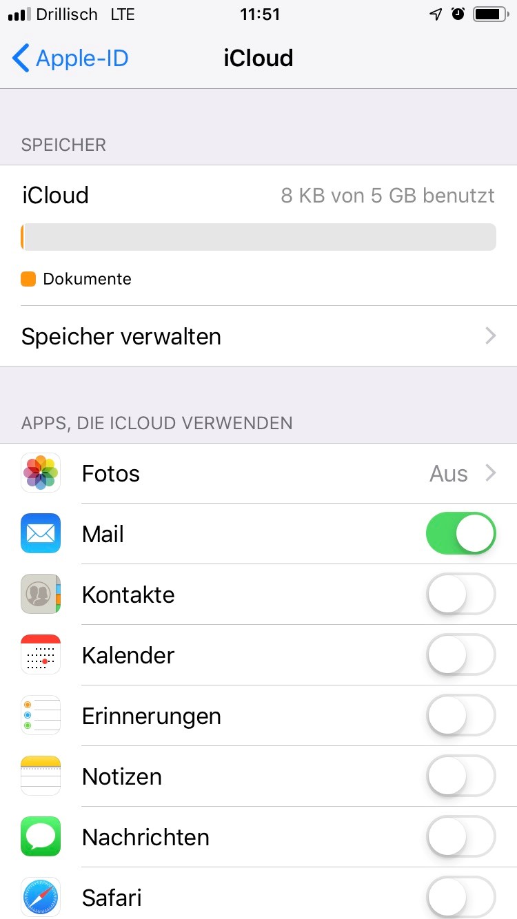 Ich habe alles deaktiviert (was ja erst nachträglich geht) außer "Mail".
