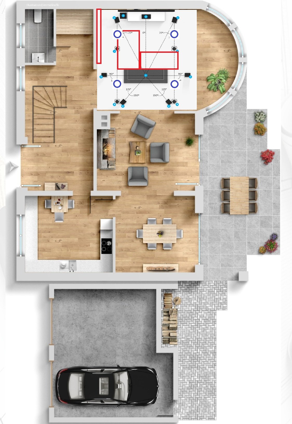 ich habe aktuell folgendes 7.2.4-System im Wohnzimmer unseres jetzigen Hauses.