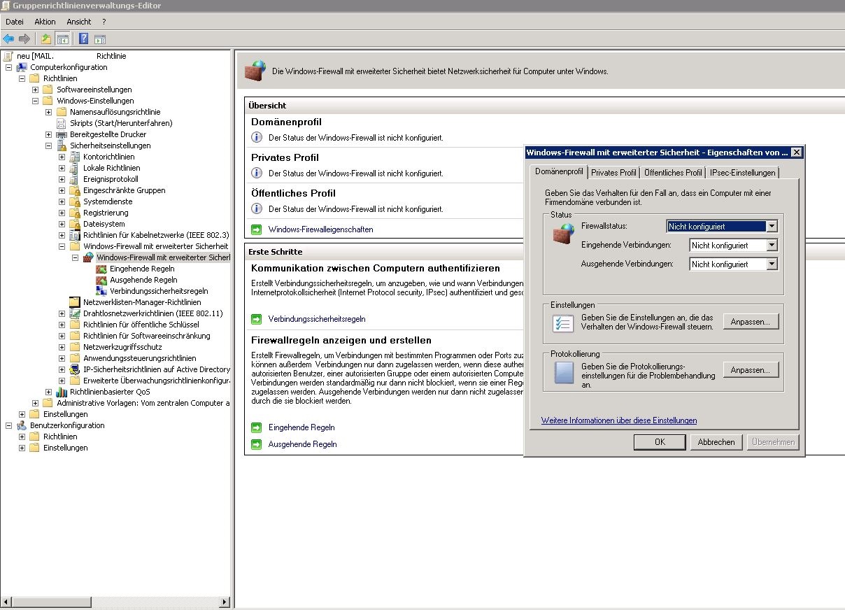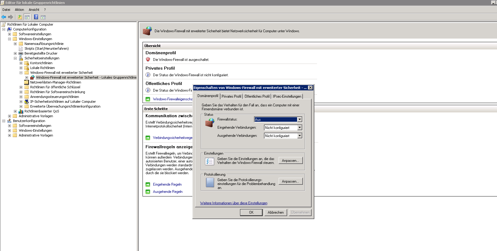 Habe nun bem Server in der Gruppenrechtlinie den Firewall ausgeschaltet siehe Bild.