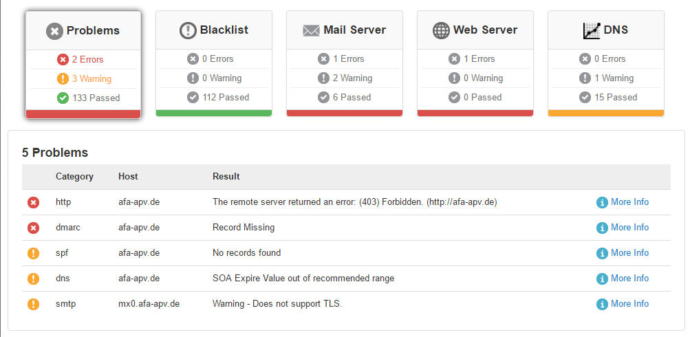ich hab mit mxtools mal eine Domain gecheckt und festgestellt, dass folgende Felder noch gefixt werden sollten: