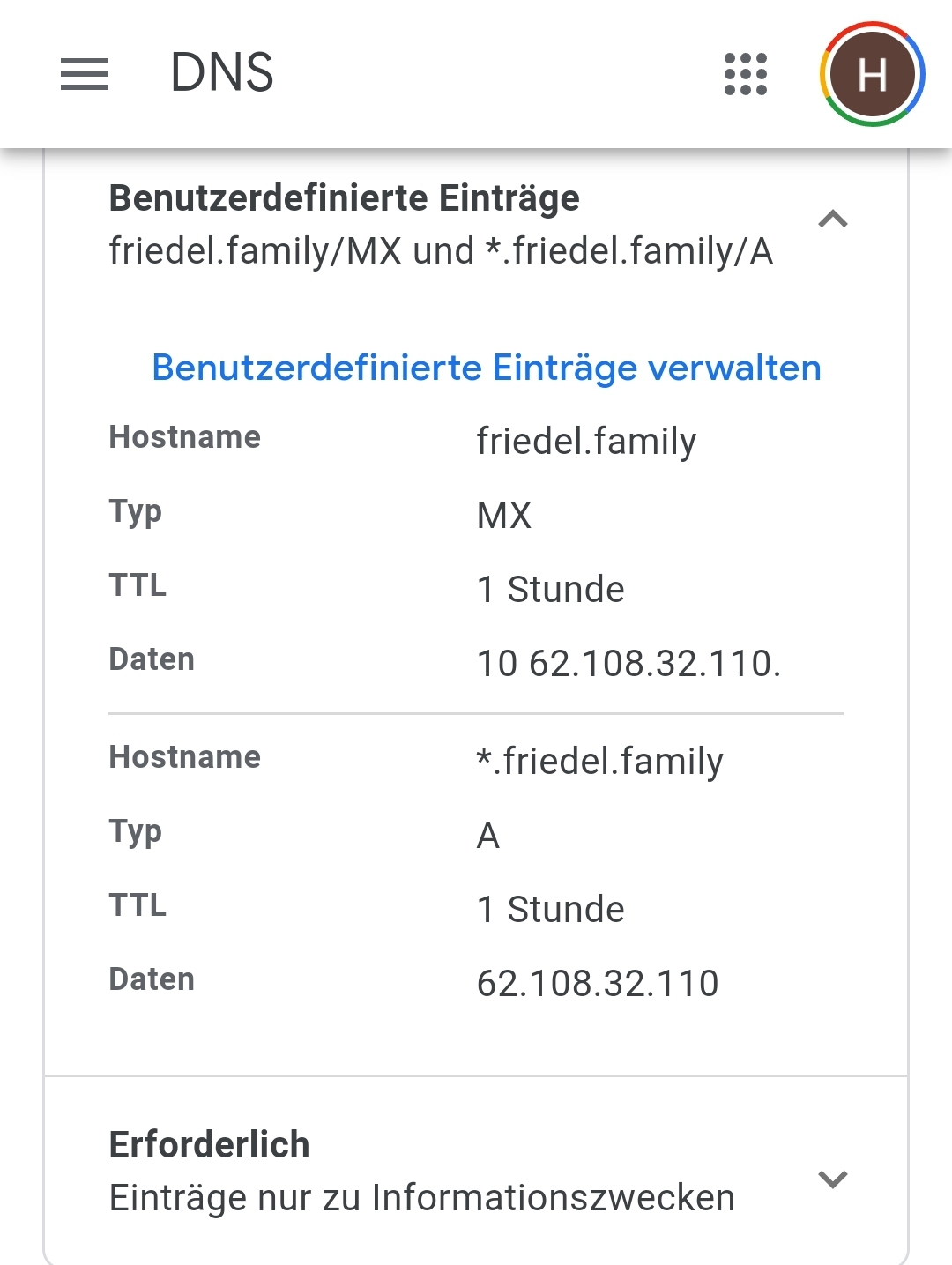 Friedel.family bei Google Domains.