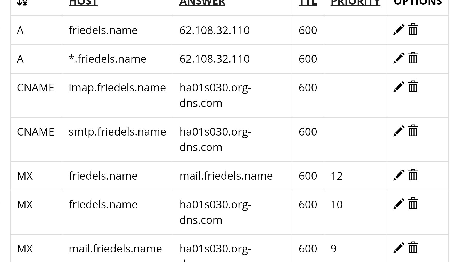 Irgendwas muss ich bei den Domains falsch konfiguriert haben: Mails an friedel.family kommen an, Mails an friedels.name nicht.