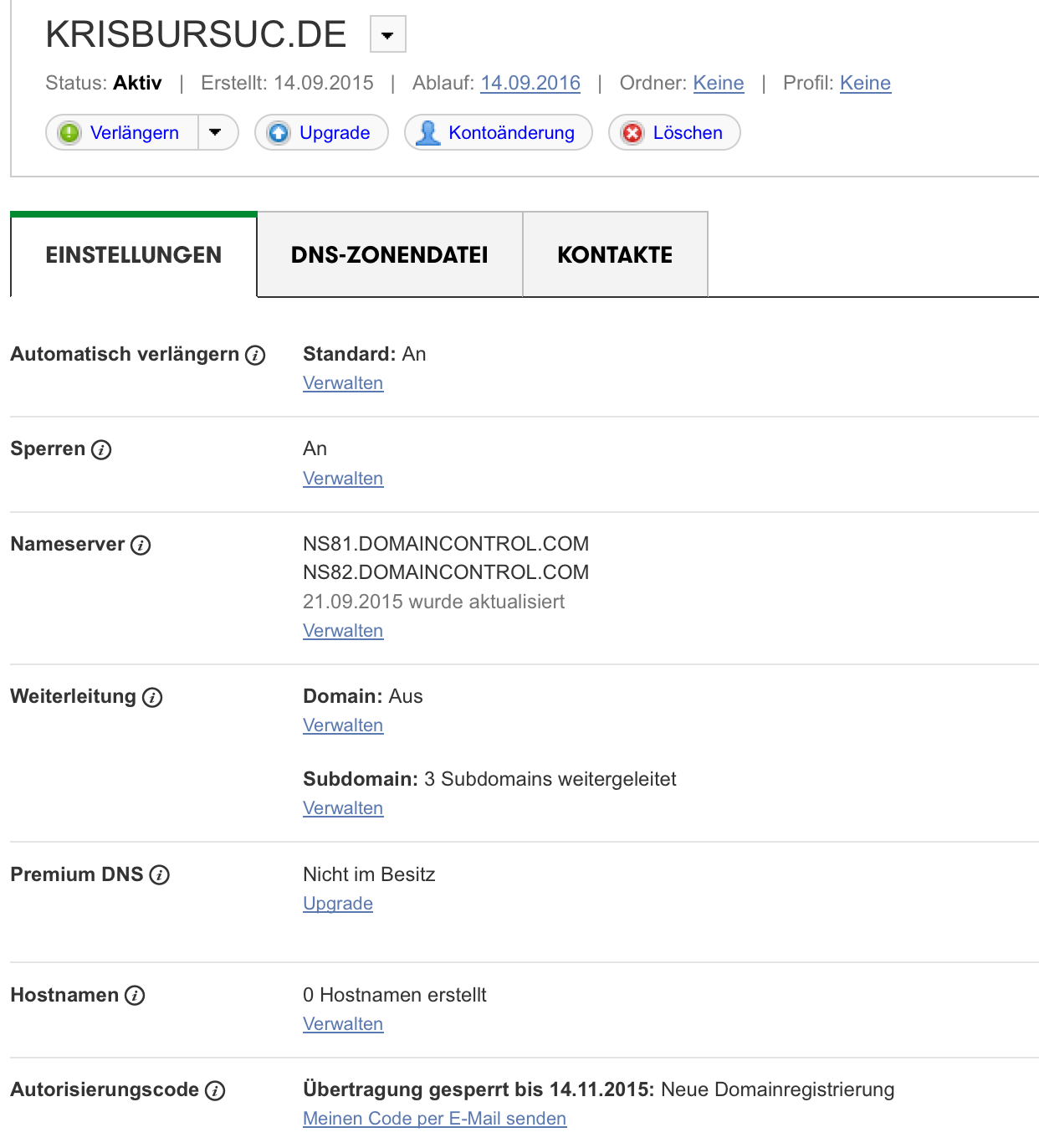 Ich möchte nun den Wordpress Blog so abändern, dass statt der Daily-Domain die Kris-Domain aktiv ist - und zwar so, als würde ich die Domain direkt bei all inkl statt bei godaddy hosten.