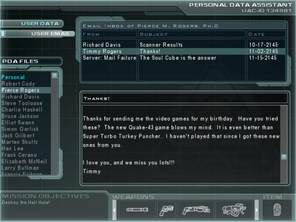 In dem PDA von Pierce Rogers steht was von Quake 43. Und das wird mal besser als manch anderes Game. Sagt Timmy zumindest.