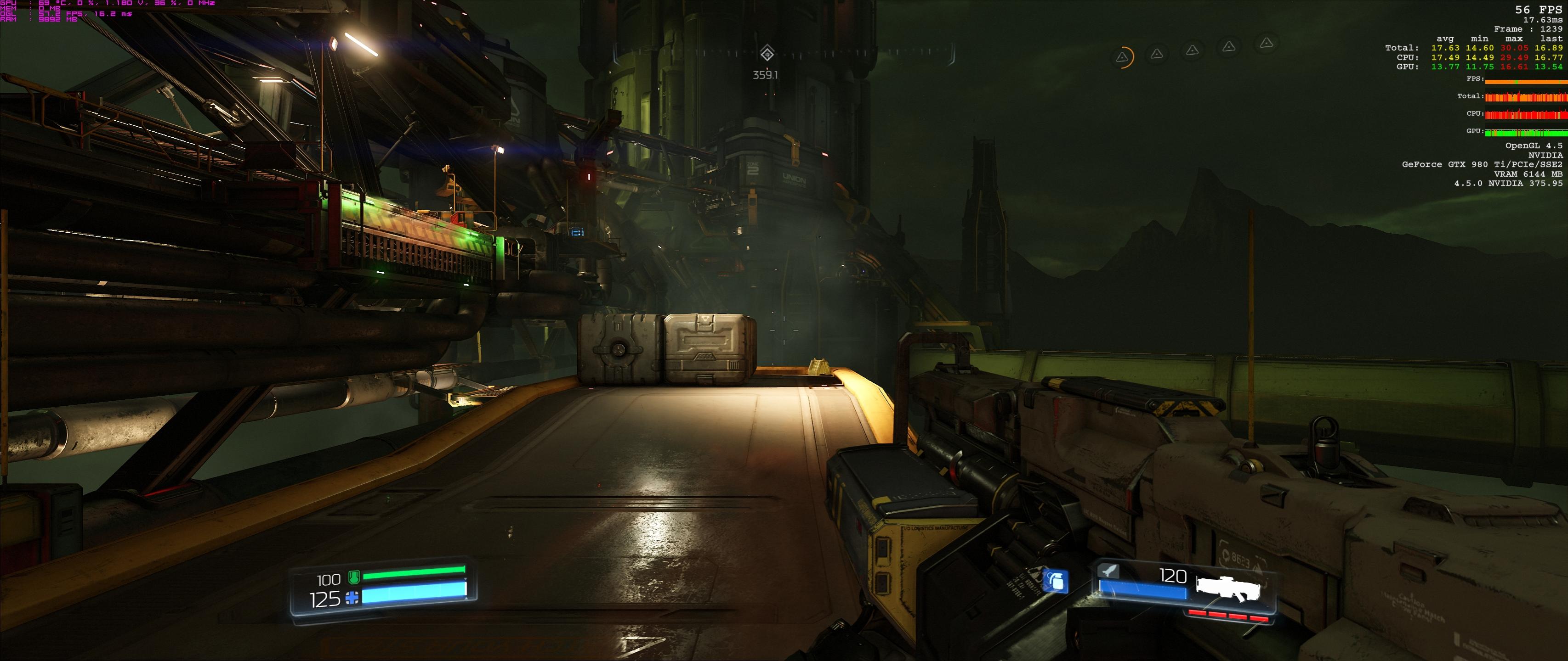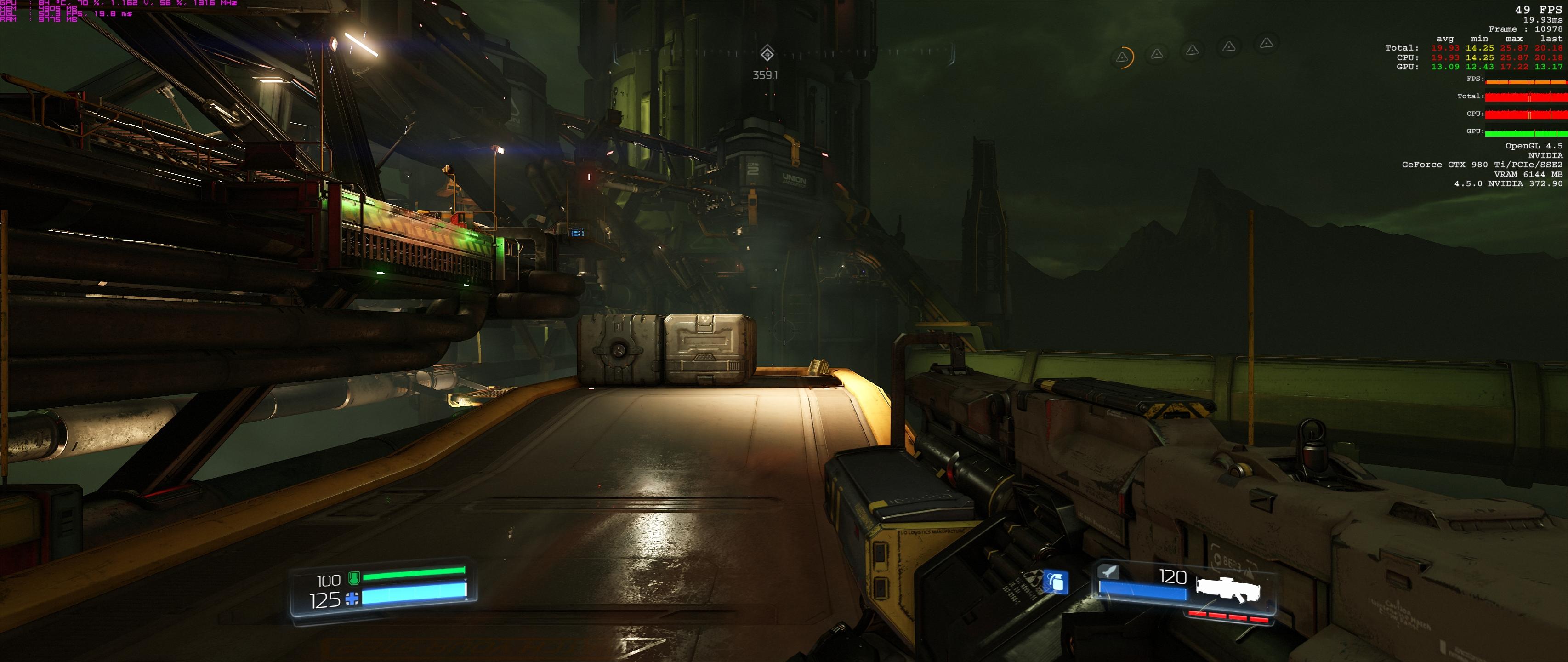 Also vor allem für einen Q9550 ist das schon beachtlich. Ich hatte in 4k etwa 45-75 fps im gesamten Verlauf des Spiels. In seltenen Fällen auch mal mehr. Doom ist fantastisch optimiert und die Balance zwischen deferred- sowie forward-renderer ist in meinen Augen nahezu perfekt.