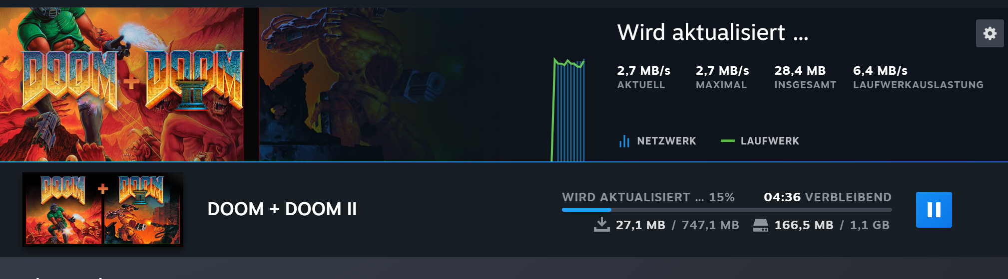 Wenn ich das richtig sehe, dann habe ich kein DOOM mehr in der Bibliothek. Ich meine sogar, dass dort "Doom (1993)" oder so stand. DOOM II ist noch vorhanden. Ob sich an den "Startscreens" etwas geÀndert hat kann ich nicht sagen.
