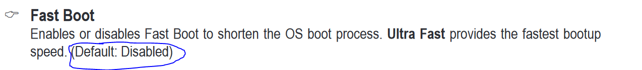 FASTboot sollte eh nicht aktiviert sein, da: