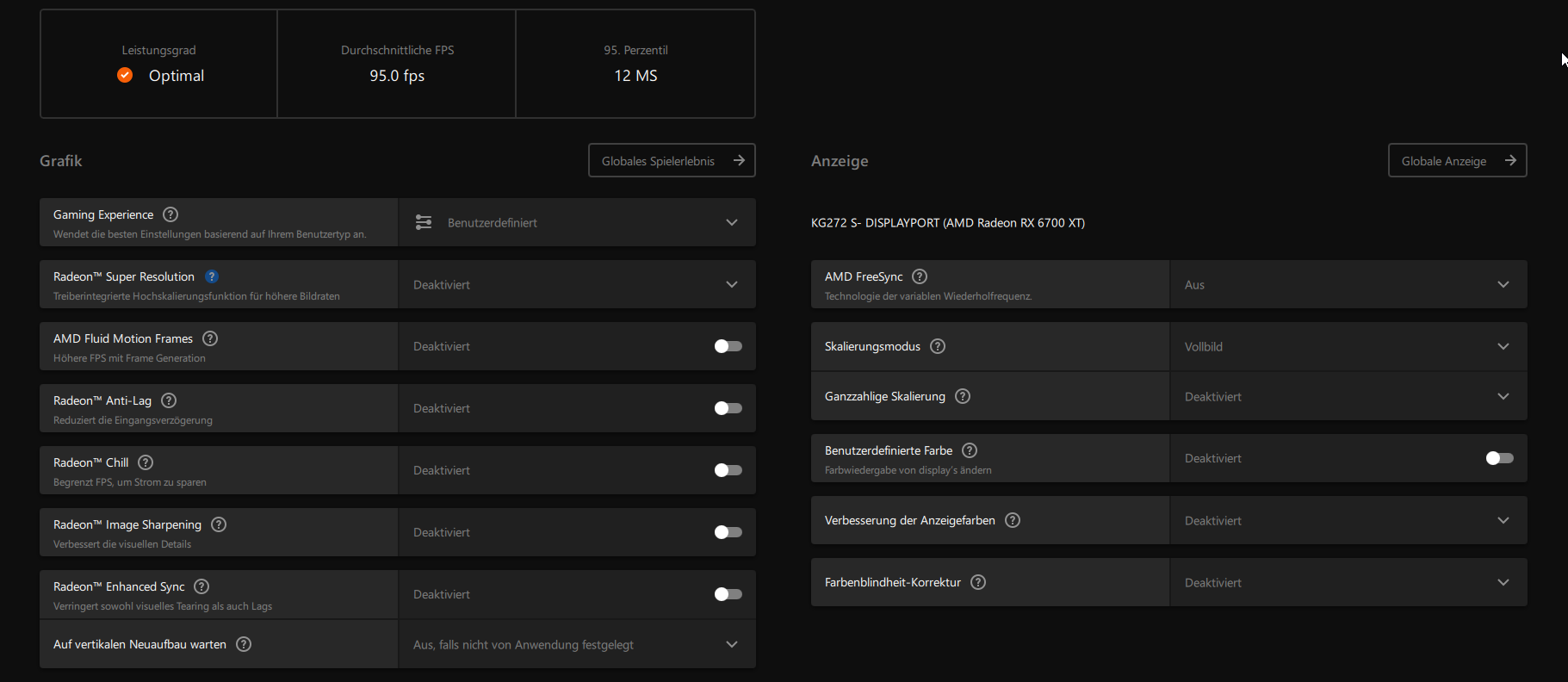- Jedes erdengliche Tutorial geguckt und jegliche Einstellungen vorgenommen Ingame wie auch im Tool von AMD