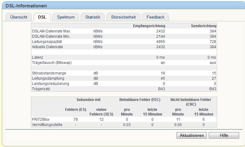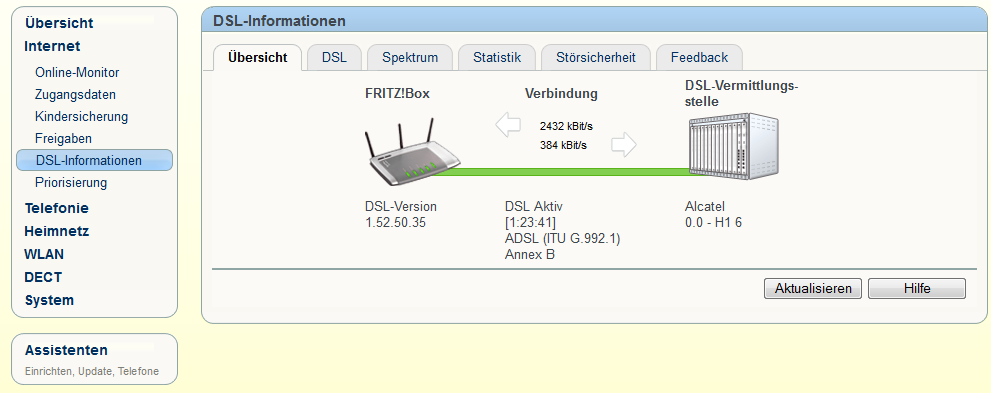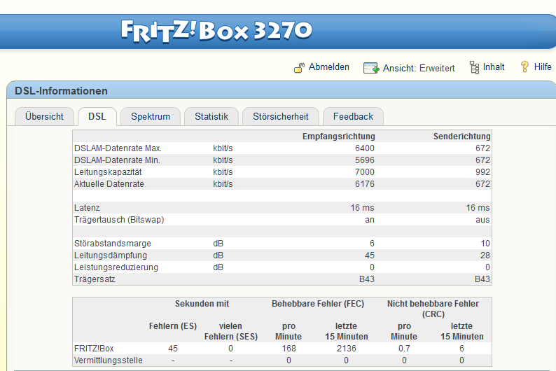 Zur Lage : Wir wohnen in einem ~5000 Seelen Dorf und haben derzeit eine "DSL 6000" Leitung von Netcologne. Das Problem an der Sache war, dass vor ca einem Jahr das Problem des Sync Verlustes eingetreten ist und das Internet nur noch sporadisch nutzbar war. Ein Anruf bei Netcologne stellte heraus, dass die Leitungsdämpfung zu hoch sei ~45db und wir deswegen lieber ein Stabilisationsprofil erstellen sollte. Nun haben wir noch ca 250kb/s down und ~80 up. Für den alltäglichen Gebrauch spielt das für mich eigentlich keine Rolle.