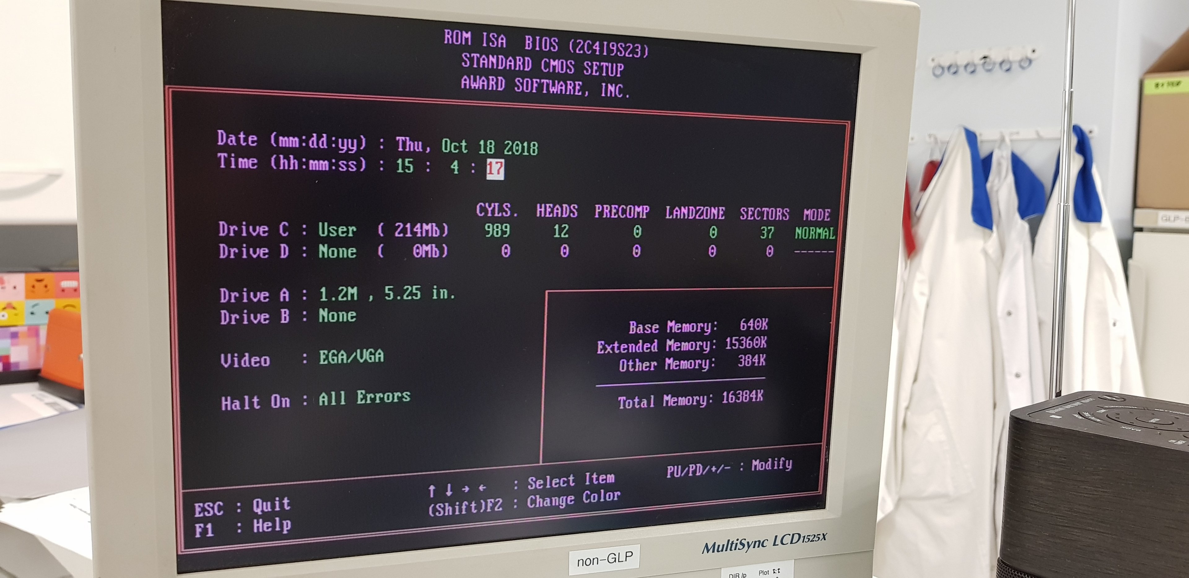 Der alte DOS PC den wir für unsere Analytikmessungen verwenden hat jetzt einen "No Bootable Drive" Fehler. Im Bios konnte ich keine Festplatte unter C sehen, also habe ich versucht die Daten dort manuell einzugeben. Die 49 vorgespeicherten Auswahlmöglichkeiten hatten alle nicht die richtigen Werte (Plattengröße = 210 Mb). Also habe ich versucht dieses ganzen Werte einzustellen wobei ich die hinteren Felder leer lassen musste. --> Neustart --> Hard Disk drive error (80) und nichts geht....