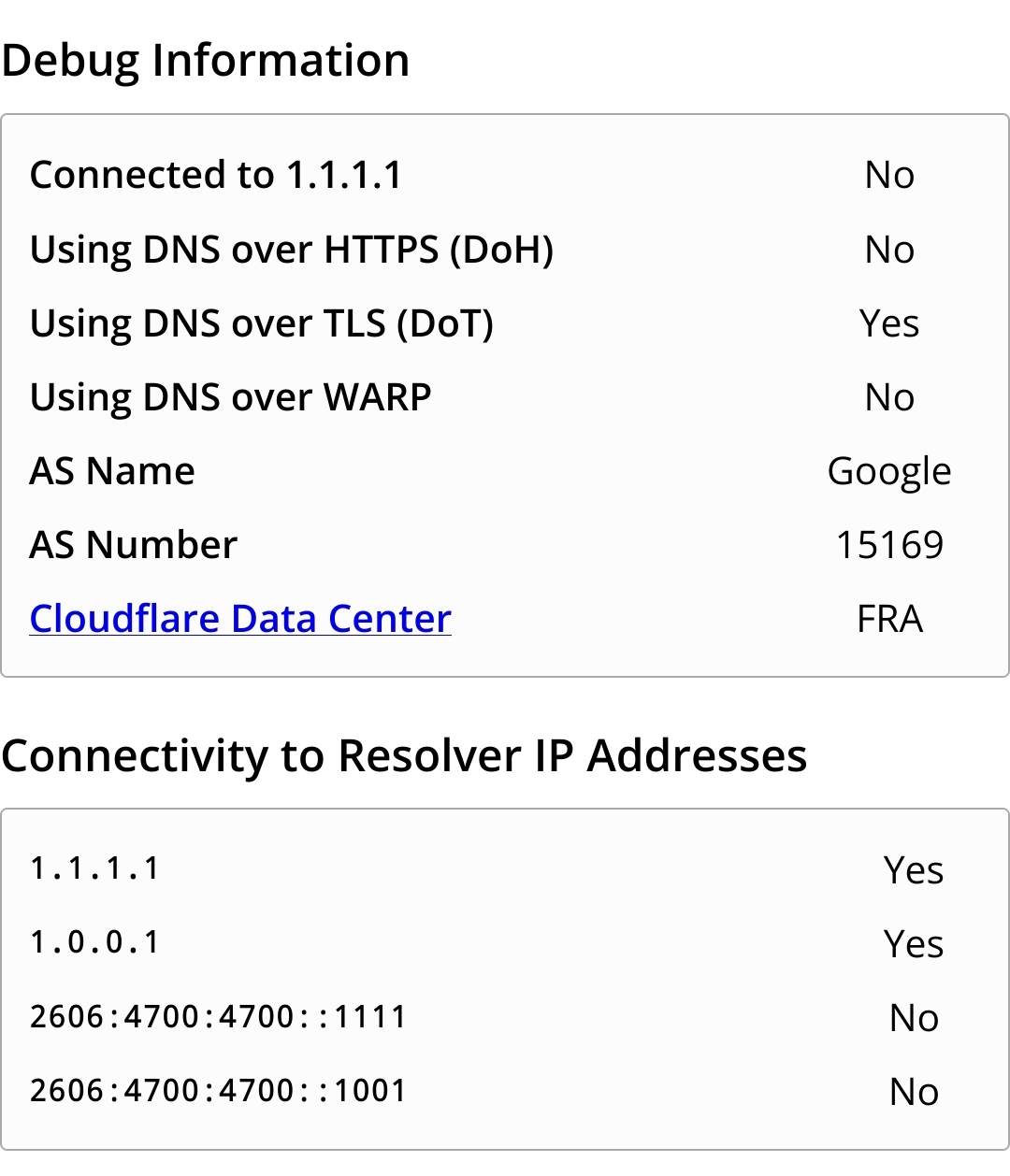 die Rückmeldung das ich kein DoT / DoH nutze.