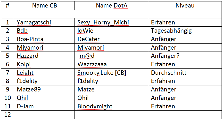 Edit: Warum habe ich den Krempel überhaupt in Word gemacht und nicht in Excel und dann nicht mal die Rechtschreibehilfe ausgestellt *facepalm* ^^