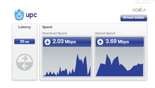 Benutze derzeit einen Asus USB-N13 Adapter Wireless-N300 WLan Stick (neuesten Treiber installiert). Habe ich mir von einen Bekannten ausgeborgt, bei dem der Stick reibungslos und mit hoher Geschwindigkeit funktioniert. Wie ich früher mit Lan gemessen habe(Laptop) hatte ich um die 80 Mbps Download und ca. 10 Mbps Upload Speed. Ich häng mal ein Bild dran wie meine Geschwindigkeit jetzt ist. Kommt halt nur manchmal vor aber kann ja nicht immer an UPC liegen schätze ich mal. Ich frage mich ob ich mir auch noch einen neuen Router kaufen soll und ob das DLan mir überhaupt nichts bringen würde.. Laut UPC Austria habe ich den neuesten von ihnen bekommen. Sind da andere Marken Router besser? Hoffe ihr könnt mir bei meinen endlos nervenden Problem helfen... MfG