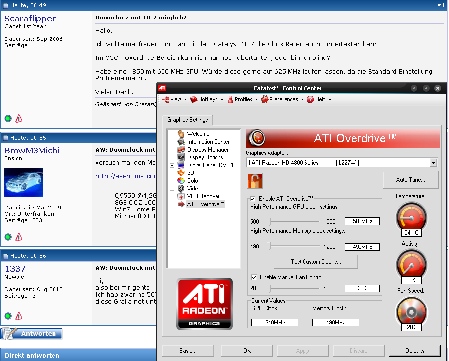 Habe eine Sapphire Vapor-X 4850 512 MB mit 650 MHz GPU. Würde diese gerne auf 625 MHz laufen lassen, da die Standard-Einstellung Probleme macht.