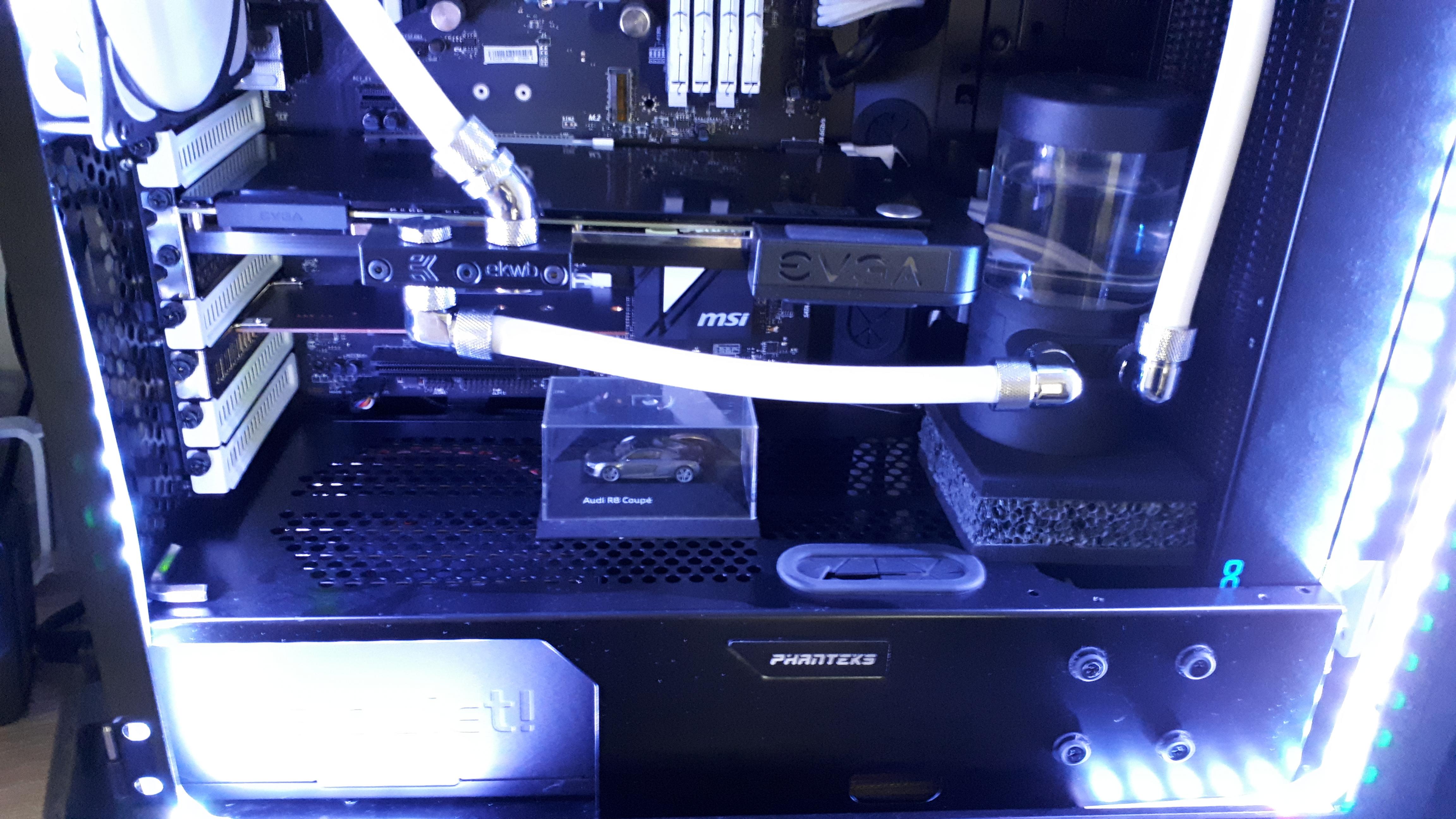 CPU + GPU werden mit einer Custom Wasserkühlung gekühlt.