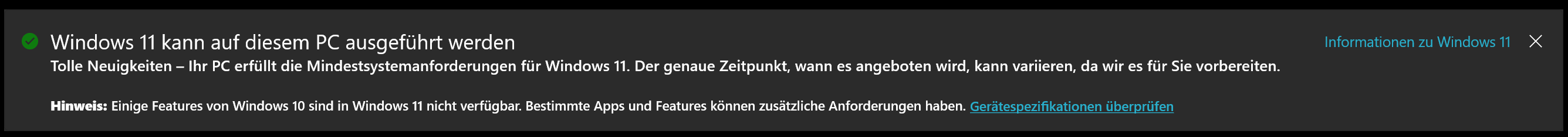 Das gesagt, ist Gestern Win11 für meinen Custom-Gaming-PC im Windows-Upgrade aufgeschlagen, und hat weitestgehend(*) problemlos funktioniert. Mein Razer-Notebook ist aber bisher noch nicht an der Reihe.