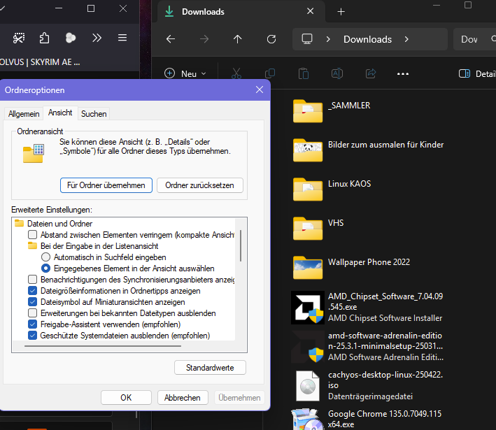Ich muss diese Sortierung jedesmal per Klick auf die Datums-Spalte einstellen, denn wenn ich den Download-Ordner schließe und wieder öffne, sind die Dateien wieder alphabetisch nach Namen sortiert.