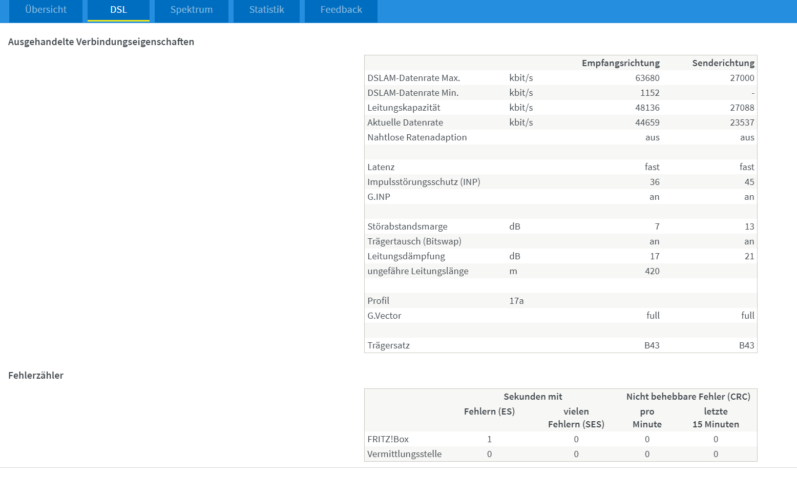 Als ich bei der Telekom nachfragte, hat man mir gesagt, dass es am Router liegt und dieser gar nicht mehr Kapazität zur Verfügung stellt. Damals hat man mir was anderes gesagt. Komisch. Ich habe mich für also für eine Fritzbox 7430 mit bis zu 450 MB Download entschieden. Hier kann das Problem nun nicht mehr liegen.