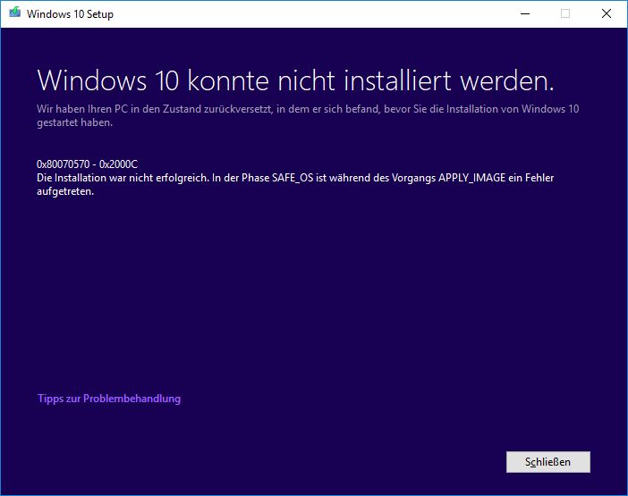 1. Versuch ist fehlgeschlagen nach über 1 Stunde rödeln vom PC mit ner 08xxxx xxxx Fehlermeldung nach Neustart