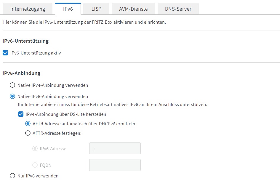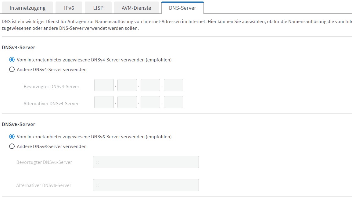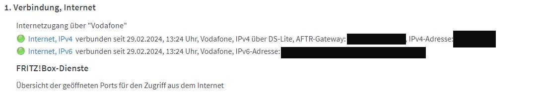 - gerne auch weitere Einstellungen der FritzBox posten, die Netzwerk-, DNS-, IPv6-, usw. Einstellungen zeigen (sensible Daten aber trotzdem unkenntlich machen)