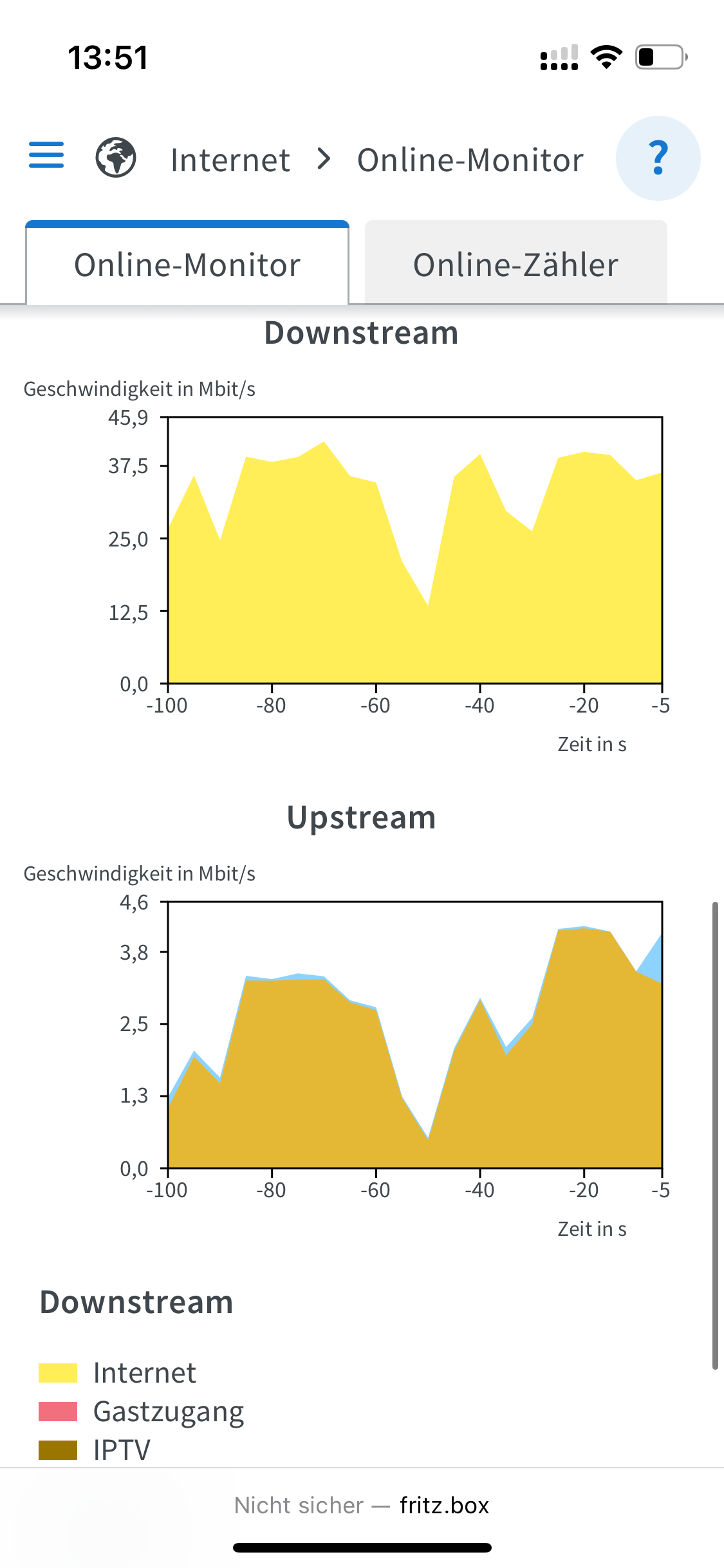 Der Vorschlag war eigentlich nicht, die Einstellung zu erhöhen sondern niedriger zu setzen, also probeweise radikal runter auf 50/25. Hast Du das auch schon durch (und ich habe es überlesen)? Und dann einmal mit „Bandbreite automatisch reservieren“ probieren. Und einmal ganz ohne den Haken bei „Bandbreite reservieren“. Dazwischen die FRITZ!Box lieber einmal zur Sicherheit neu starten.