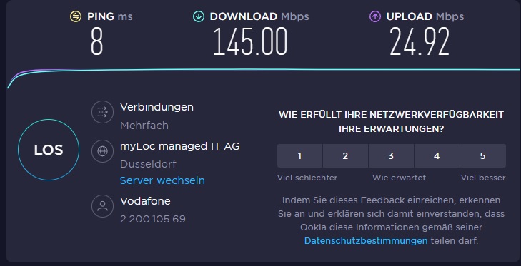 Mein Laptop erzielt selbst im WLAN weitaus höhere Downloadraten.